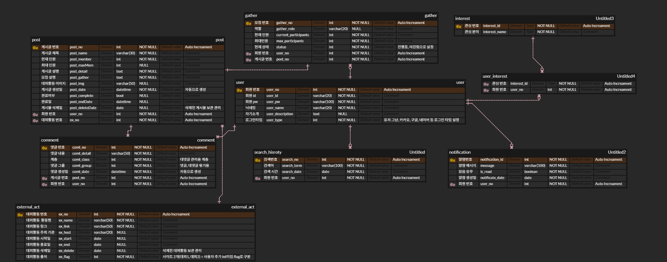 이후 부분은 중복되기 때문에 따로 설명을 제외하였다. (Comment, ExternalAct, Gather, SearchHistory, Notification, Interest)